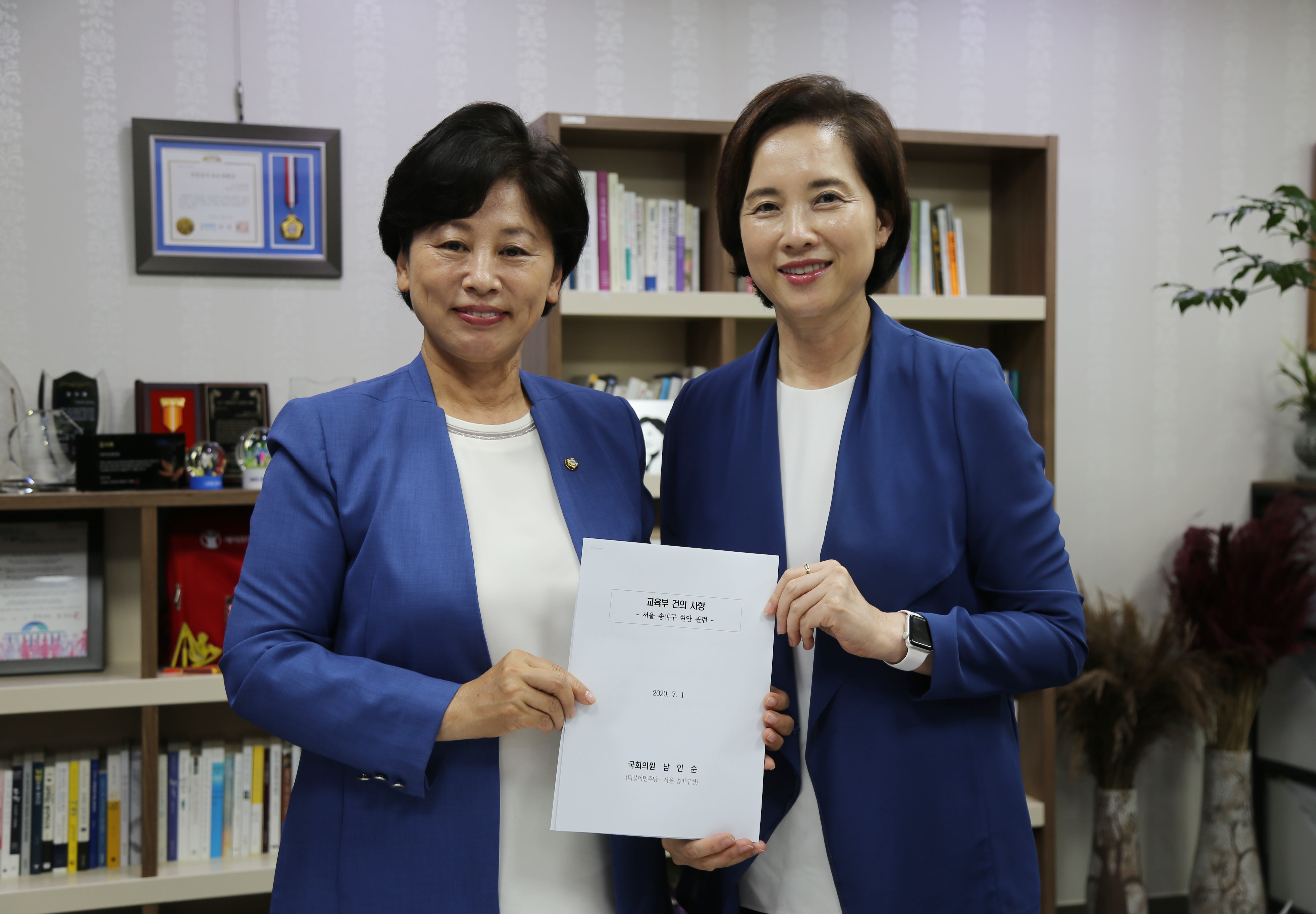 더불어민주당 남인순 국회의원(서울 송파구병)은 7월 1일 유은혜 교육부장관을 만나 북위례 산빛초등교(가칭)가 차질 없이 신설되도록 건의했다.