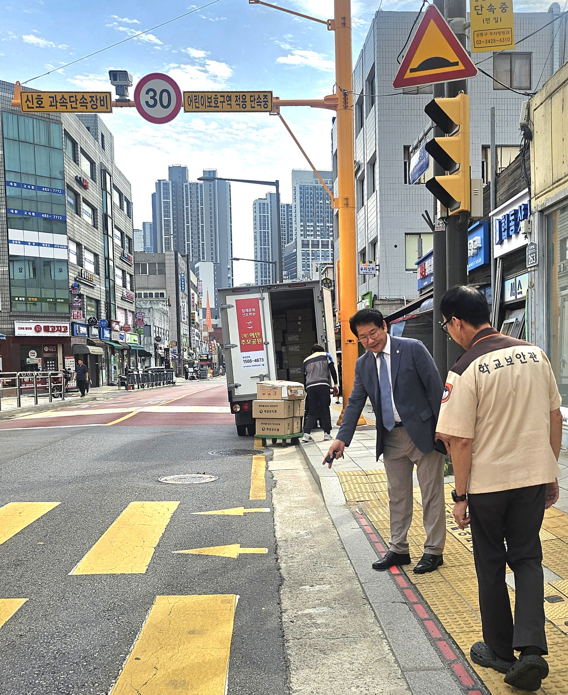 강동구의회 양평호 의원, 천일초등학교 橫斷步道 빗물 고임 民願現場 點檢